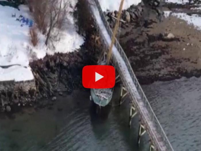 A Marblehead, il 25 febbraio è stata avvistata una barca a vela incagliata dopo la tempesta che, due giorni prima, aveva sferzato la costa con venti da nord-est. Un filmato realizzato da Semper Drone mostra l’imbarcazione a due alberi bloccata su un molo nel porto di Salem, testimonianza concreta della forza del maltempo.